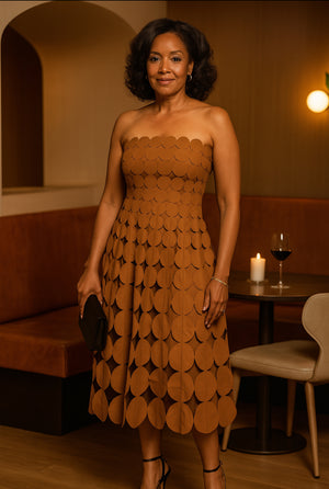 Designed with versatility in mind, it pairs flawlessly with sleek boots or heels for a polished city look, or dress it down with flats for an elevated day-to-day style. Whether you’re headed to brunch, a fashion-forward event, or a night out, this dress ensures you’ll command attention with confidence and grace.