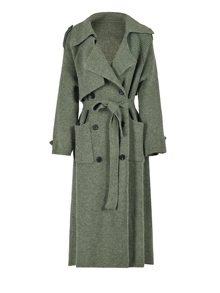 Elevate your outerwear game with our Knitted Trench Coat, a timeless layering piece designed to keep you stylish and warm. Crafted from a soft, ribbed knit fabric, this coat blends the sophistication of a trench with the comfort of a cardigan.
